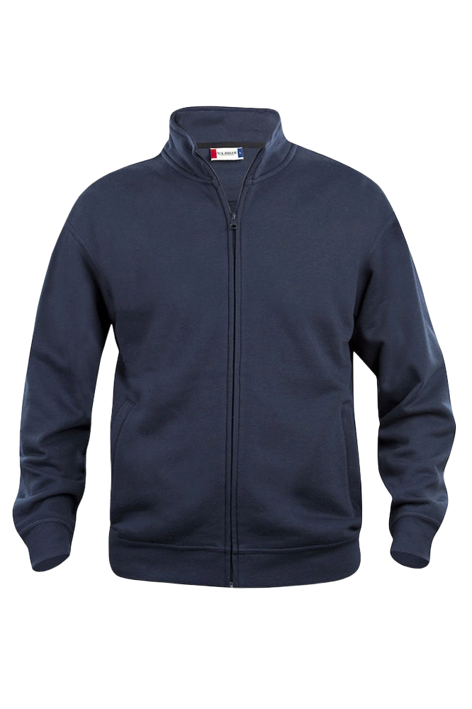 Felpa cardigan. Modello con colletto alto senza cappuccio.