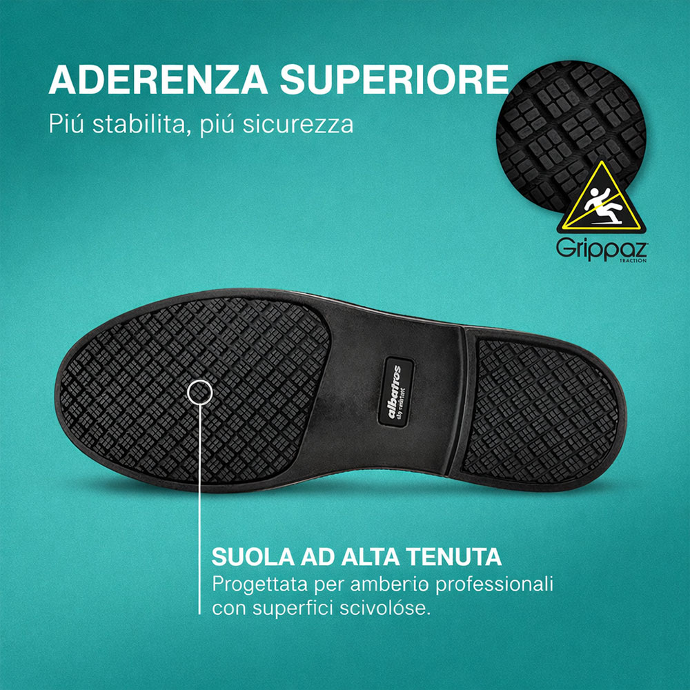 La suola di trazione GRIPPAZ® offre un'incredibile resistenza allo scivolamento, anche in presenza di carichi pesanti e su superfici difficili.