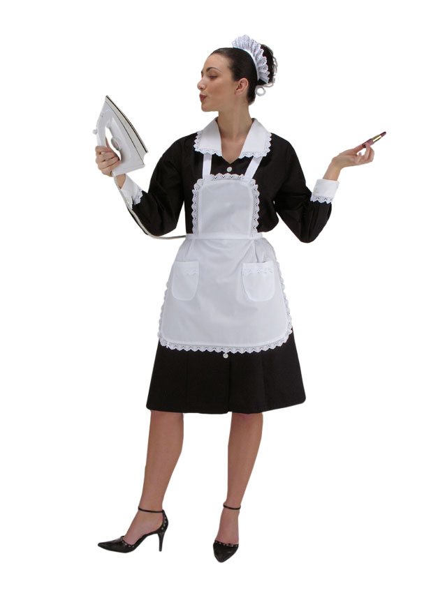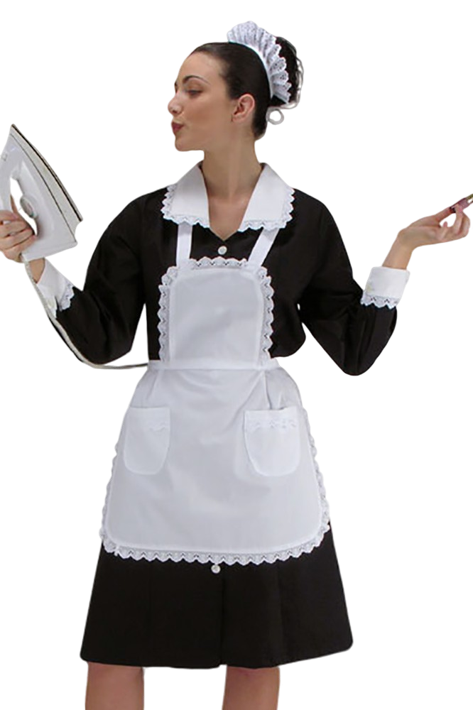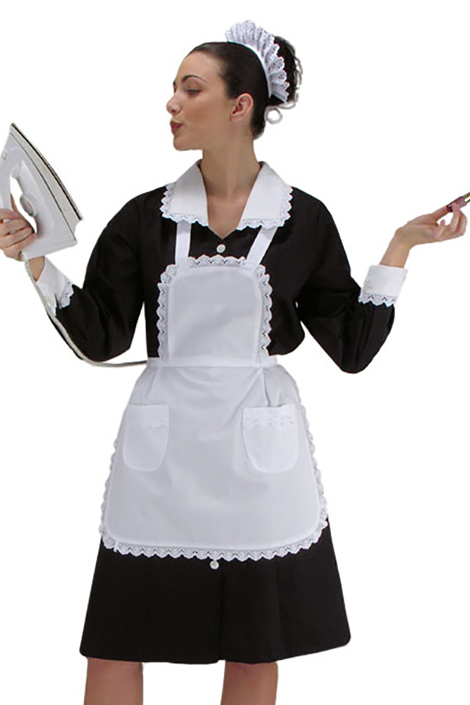 GREMBIULINO DA CAMERIERA IN COTONE BIANCO CON BORDURA IN PIZZO SANGALLO.